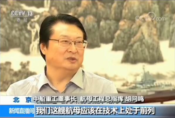 中船重工董事长 航母工程总指挥 胡问鸣:现在已经有一只研发设计建造的队伍,已经历练成军,而且平均年龄在36岁。将来我们国家想发展任何一型航母,我们具备自主设计能力了。既然能发展任何航母,那当然任何水面舰艇,我们就会具备这样的能力。