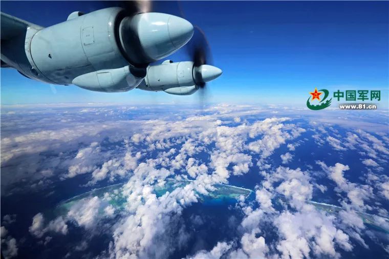 运-9飞机沿着预定航线,飞越南海上一座座美丽的岛礁。刘畅 摄