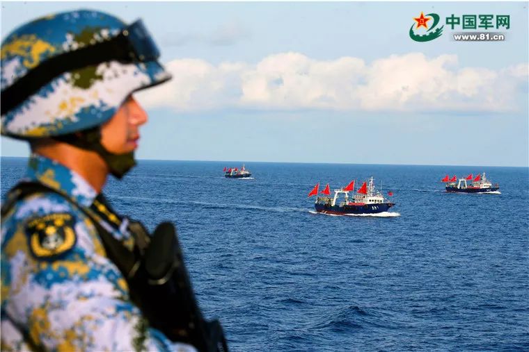 2015年5月12日,中国海军第二十批护航编队在为我国渔船编队实施特殊护航,随舰特战队员始终保持警惕,为渔船护航 代宗锋 摄