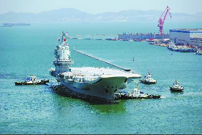 18日中午,我国首艘国产航母完成首次出海试验任务,返抵大连造船厂码头。