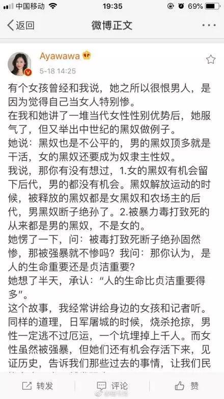 18日下午14:25分,@Ayawawa 发布一条微博,里面有这样一段话??