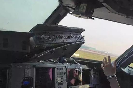 川航事件中脱落的风挡玻璃 图源:央视新闻 下同