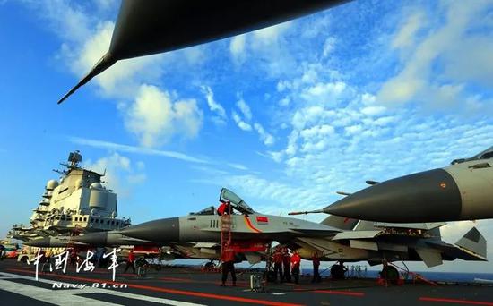 ▲4月20日,海军辽宁舰编队在西太平洋,开展远海作战对抗训练。图为机务人员正在紧张有序进行安全检查,确保舰载战斗机正常飞行。记者张雷 摄 本文图片来自中国海军网