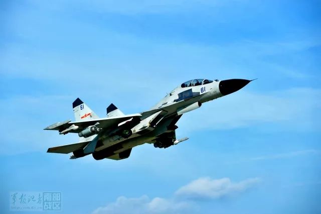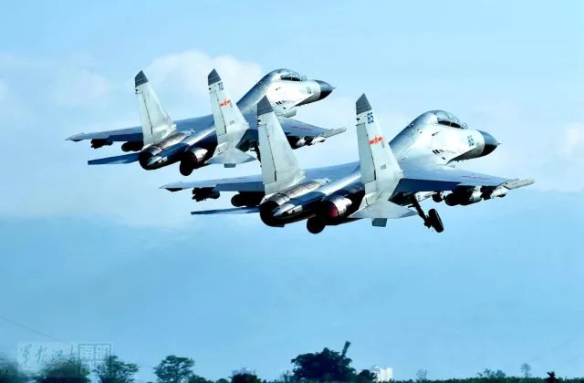 副旅长吴郑军机组驾驶某型歼轰机率先起飞,同批另两架战机也相继起飞。