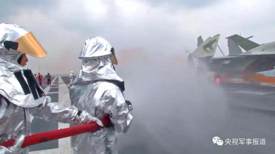 △刚刚完成跨区高强度对抗训练返回母港的辽宁舰,顾不上休整,连续开展了装备维护保养,以及损害管制、防核生化等港岸模拟训练。