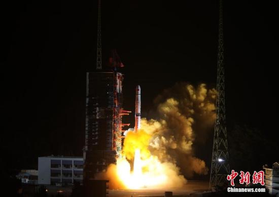 5月21日5时28分,中国在西昌卫星发射中心用长征四号丙运载火箭,成功将探月工程嫦娥四号任务鹊桥号中继星发射升空。图为发射现场。中新社发 梁珂岩 摄