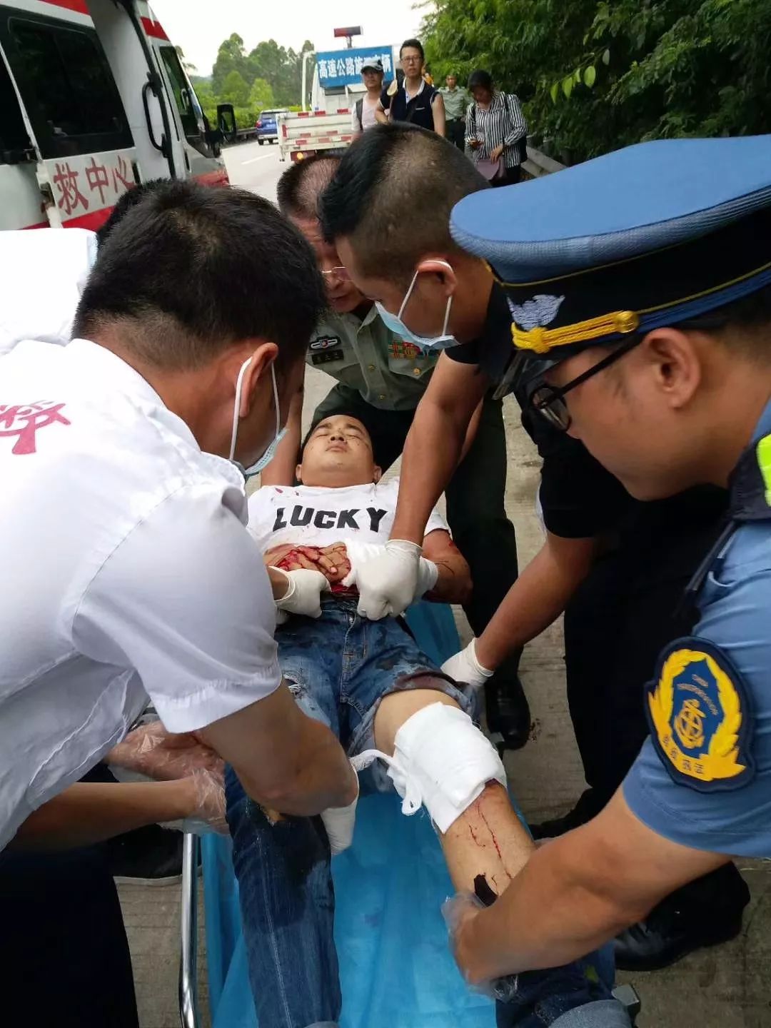 当高速公路路政、交警、120急救赶到现场时,一场惊险的交通事故救援已基本完成。3名同志协助医护人员把伤者抬上担架转至救护车才离开。