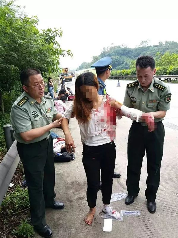 高速公路,高温酷暑,汽油渗漏,险象环生,但他们浑然不顾,一心只想救人,这就是军人的纯粹、勇敢和担当;分工明确,配合默契,动作迅即,这就是军人的视野、经验和作风;场面血腥,情况危急,处置得当,这就是军人的胆色、果敢和冷静。