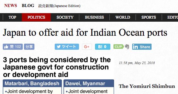 值得一提的是,据《读卖新闻》披露,“中国也曾摸索在土瓦和马达尔巴里建设新港,但因日本的计划而遇挫。”