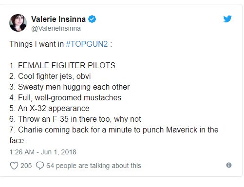这俩“活宝”互相挤兑的同时,《壮志凌云2》的消息在美国军迷和媒体当中也引起了热烈讨论,毕竟这是伴随着80后一代人成长和让他们迷上战斗机的电影么。