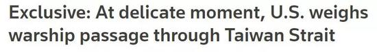 英媒称,美国官员表示,美国正考虑派一艘军舰穿过台湾海峡。在中美关系紧张之际,此举可能会引发来自北京的激烈反应。