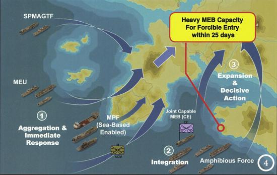不过这并不意味着海军陆战队要放弃以前的小股作战,治安战和特种作战,博德罗告诉USNI新闻记者,他们除了继续要求海军陆战队保持小型合成单位MEU的作战以外,他们也要求海军陆战队习惯“单船作战”,以保证海军陆战队快速部署能力以及海军陆战队部署的敏捷度,但是就大规模训练来看,美国海军陆战队必须有整体出动进行高强度作战,要熟练掌握20-30艘战舰同时出动进行大规模作战的能力。
