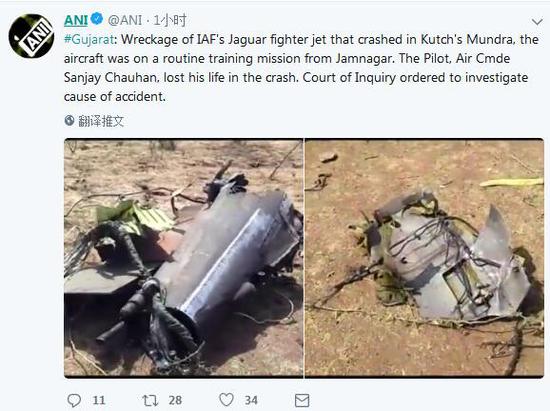据印度亚洲通讯社社交媒体报道称,6月5日上午10点30分左右,印度一架美洲虎攻击机在例行训练时坠毁,事故发生于印度西部古吉拉特邦喀奇县蒙德拉,失事战机飞行员空军准将桑贾伊·乔汉当场身亡,印度调查法庭已经下令调查此事故。