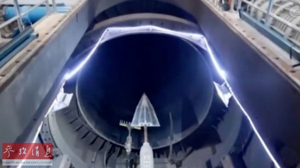资料图片:中国媒体报道中出现的疑似HGV高超音速飞行器进行风洞测试视频截图。(《南华早报》网站)