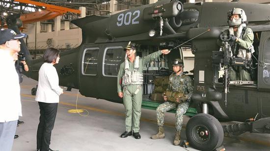 [观察者网 综合报道]据台媒6月12日报道,台湾地区领导人蔡英文昨天到台中市新社区出席“陆军航空602旅餐会”,与台军官兵提前过端午。蔡致词称,解放军近来动作频频,“不但威胁台湾安全,也影响区域和平。”蔡英文还称,自己是台军的靠山,优化“年金”是为了让军人在军中服务的时间可延长。台湾一定会用心照顾台军,强调自己“我说到做到,大家放心。”