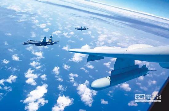 ▲中国大陆空军多架战机4月19日展开“绕台巡航”军事训练,其中轰-6K机翼下方挂载有效射程在1500-2500公里之间的长剑-20巡航导弹。(台湾中时电子报)