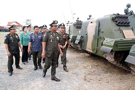 2015年,柬埔寨国防部长狄班在接收中国援助装甲车辆仪式上(新华社图片)