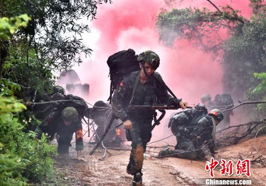 中新网汕尾6月26日电 (索有为 潘桂添)3名持枪和砍刀的“恐怖分子”在强势火力的压制下,被迫朝丛林密集的方向逃窜,企图借助树木茂密地形负隅顽抗。“立即实施搜索和追捕,力争在最短时间将‘恐怖分子’予以捕歼。”随着作战指挥员的一声令下,武警特战队员采取“围、堵、搜、捕、歼”等战术手段,成功抓捕该恐怖犯罪团伙。这是6月26日记者在武警广东省总队汕尾片区某深山中记录的一组山地追逃、捕歼战斗对抗训练战斗的镜头。