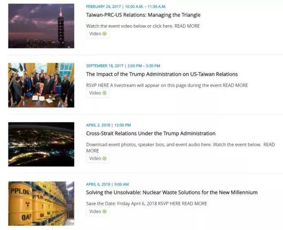此外,在其官网可看到该智库曾多次举办有关美台关系以及相关议题的论坛活动。