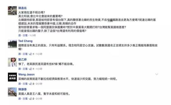 另有一些网友则对蔡英文当局冷嘲热讽:“菜桶的政策就是不断拉低经济与教育水平,快速减少邦交国,努力缩短统一时程。”“惨了,老英跟民进洞(民进党谐音)还有些87绿蝇(绿营)不能自嗨。”