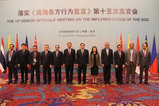 陆慷:6月25日至27日,中国与东盟国家在中国湖南省长沙市举行落实《南海各方行为宣言》第十五次高官会和第二十四次联合工作组会。外交部副部长孔铉佑作为中方高官率团出席。会议就落实《宣言》、推进海上务实合作以及“南海行为准则”磋商等议题深入充分交换意见。各方肯定了当前南海形势总体稳定的良好势头,重申全面、有效落实《宣言》的重要性,一致同意在业已形成的“准则”框架基础上进一步推进“准则”磋商,尽快形成单一磋商文本草案,作为下步商谈的基础。会议还审议更新了2016—2018年工作计划。