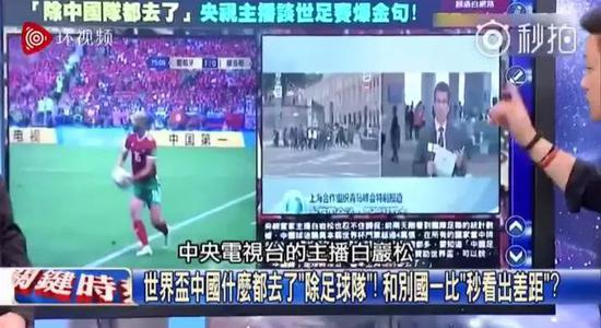 近日,岛内一档名为《关键时刻》的政论节目中,向来以“大嘴”风格著称的节目主持人刘宝杰向观众一一介绍本届俄罗斯世界杯上中国元素强大的“存在”。↓