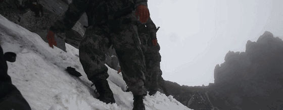 山的背阴面,积雪没有融化,走起来更加危险,战士们的身体几乎贴着山体表面在行走,一不小心就会打滑。一路上马班长都在提醒大家一定要小心,因为5年前,就是在这条路,马班长差点命丧于此。