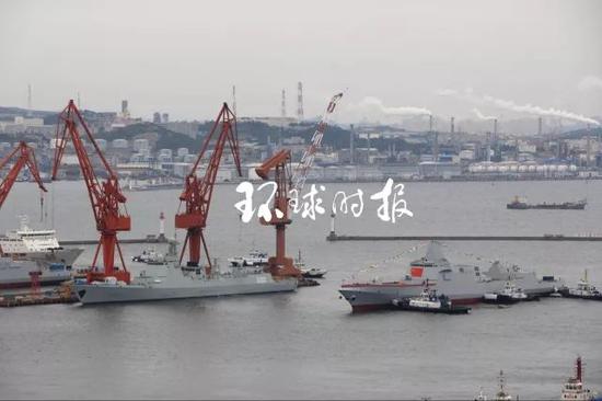 ▲14时许,第二艘055驱逐舰出坞。
