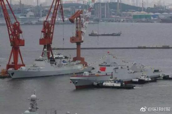 台媒对比去年在江南造船厂下水的055首舰后称,昨天在大连造船厂同时下水的两艘055驱逐舰完成度不高。