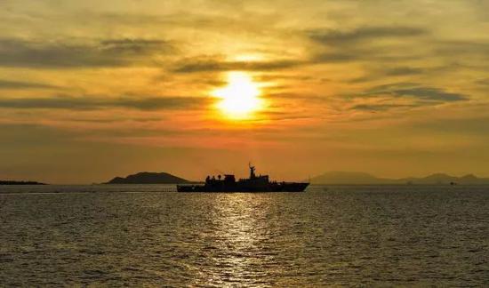 ▲资料图片:驶离码头的海警3304舰航行在夕阳中。新华社记者 毛思倩 摄