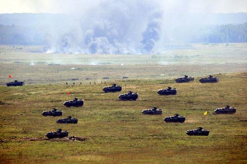 资料图:2007年8月17日,在俄罗斯车里雅宾斯克举行的“和平使命—2007”上海合作组织成员国联合反恐军事演习实兵演练中,中方重型突击装备向“恐怖武装”发起总攻。 新华社记者 李刚 摄