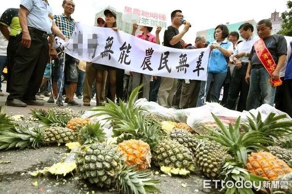 今年岛内凤梨产量多,但价格下探。虽然台“农委会”已提出补助拯救产地价,但仍难平怒火。果农号召300人北上,怒喊“‘政府’无能、农民无辜”,“赖清德下台”等口号,一路从立法机构游行至行政机构砸凤梨抗议。