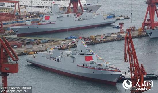 军事:我军两艘万吨大驱同日下水 中国建造能力已首屈一指