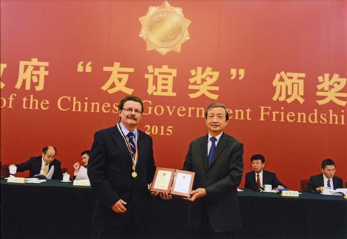 亚历山大·冈察洛夫特聘研究员,美籍俄裔,1956年11月29日出生,1983年俄罗斯科学院光谱学研究所物理专业博士毕业,2012年入选中共中央组织部“外国专家千人计划”。2015年获中国政府“友谊奖”,图为时任国务院副总理马凯向冈察洛夫颁奖