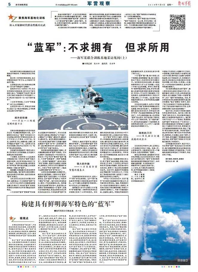 军事:军报整版报道中国海军蓝军部队 信息量很大(图)