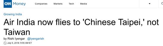近日,印度航空公司对目的地的名称的更改,引起了美国有线电视新闻网的注意,报道称,中国希望全球企业不将台湾称为一个独立实体。印度的国家航空公司是最新一家遵循这一要求的企业。