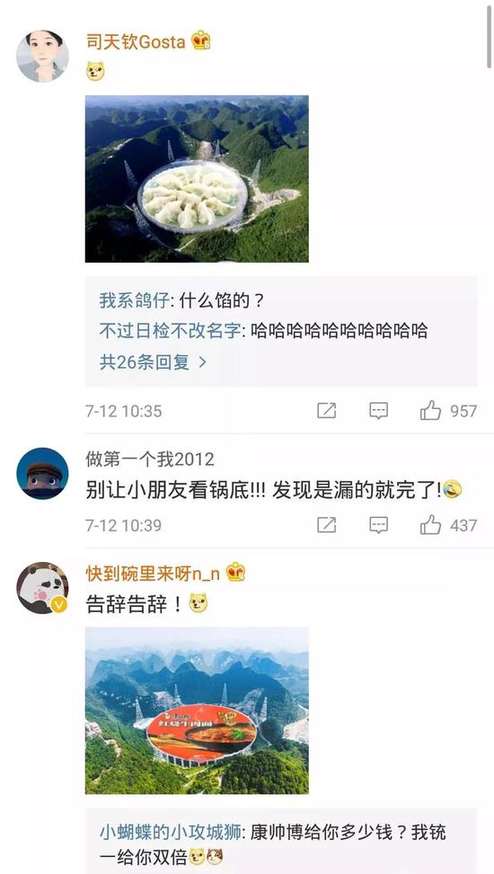 军事:我国世界最大射电望远镜遭网友恶搞 被P成大锅装美食