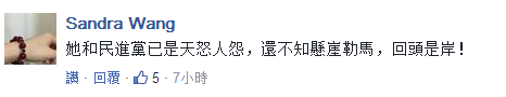 还有网友借此批“她和民进党已是天怒人怨,还不知悬崖勒马,回头是岸!”