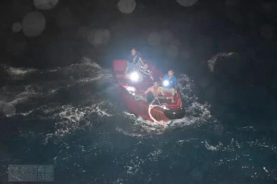 时间就是生命,救援人员迅速将3名获救人员运送礁上,剩余人员留下继续搜救。