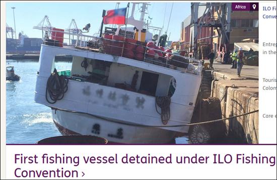 [观察者网 综合报道]联合国旗下国际劳工组织(ILO)18日表示,已扣留首艘违反《渔捞工作公约》的渔船,该渔船来自台湾。台当局外事部门当天表示,涉案渔船已获释离港。