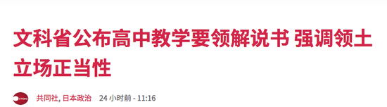 据日本共同社报道,7月17日,日本文部科学省公布了自2022年度新生开始实施的《高中学习指导要领》说明书,在地理、历史及公民科目的部分内容中,将提前适用教授“竹岛(韩国称独岛)、钓鱼岛是日本固有领土”等修改内容,以加强所谓的“领土教育”。