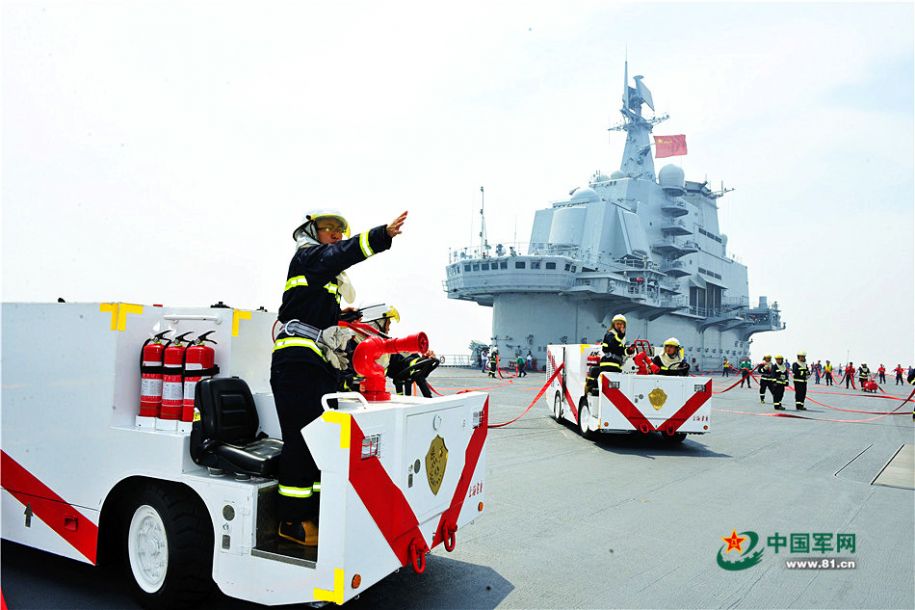辽宁舰进行消防训练。张凯摄影