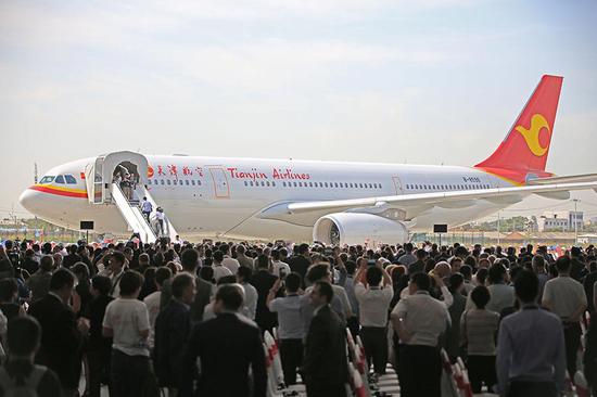 空客天津交付的首架A330宽体客机,图片来源:中新社