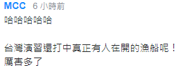 也有网友在吐槽的同时,顺便讽刺台军军演,“哈哈哈哈哈,台湾演习还打中真正有人在开的渔船呢,厉害多了。”台军“金江舰”此前在高雄“左营基地”实施甲级操演测考前,导弹中士高嘉骏违规独自操作“雄三”导弹射击系统,误将一枚导弹击发,射中在澎湖海域作业渔船“翔利升号”,造成船长黄文忠死亡、3名船员受伤。