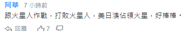 还有网友脑洞大开,表示“地球已经放不下美日澳军队了”,“跟火星人作战,打败火星人,美日澳占领火星,好棒!”