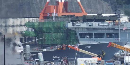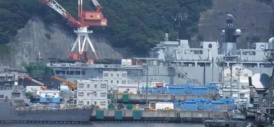 近日,英国海军最大的两栖舰——海神之子号两栖登陆舰(ALBION LPD-14),非常意外地在日本横须贺港进行修理。从公开图片看,舰尾的坞门部分正在进行修理,绿色防护网非常醒目。