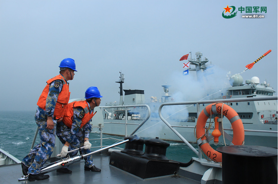 军事:中国2艘军舰在南海演习 发射数十枚炮弹击中靶船(图)