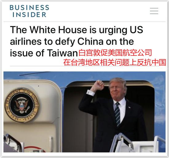 此前,美国三大航空公司曾以“听从美国政府要求”为由拒绝整改。美国商业内幕网站刊文称,白宫早些时候曾要求这三家公司不要遵守中国提出的要求。