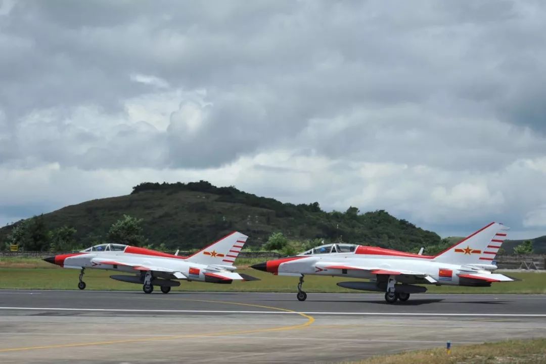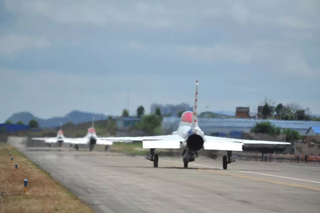 飞行转场过程中,多名飞行员在座舱内示意全面检查完毕,并与航空工业贵飞党委书记、董事长王文飞、贵飞副总经理单怀荣等相互挥手致意后,多架山鹰改飞机“同步”滑向机场跑道,并“密集”转场飞去。