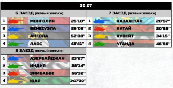 7月30日比赛成绩,哈萨克斯坦以1秒优势夺得第一名
